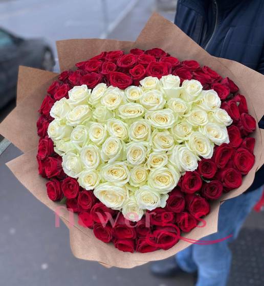 Прекрасное сердце в крафте из 101ой розы в ассортименте. Давно всеми известное сочетание крафта с розами, да и еще в таком большом исполнение, ну просто не может никому не понравится. Определено только одно сплошное удивление при вручение этого букета, ну и конечно-же - восторг!